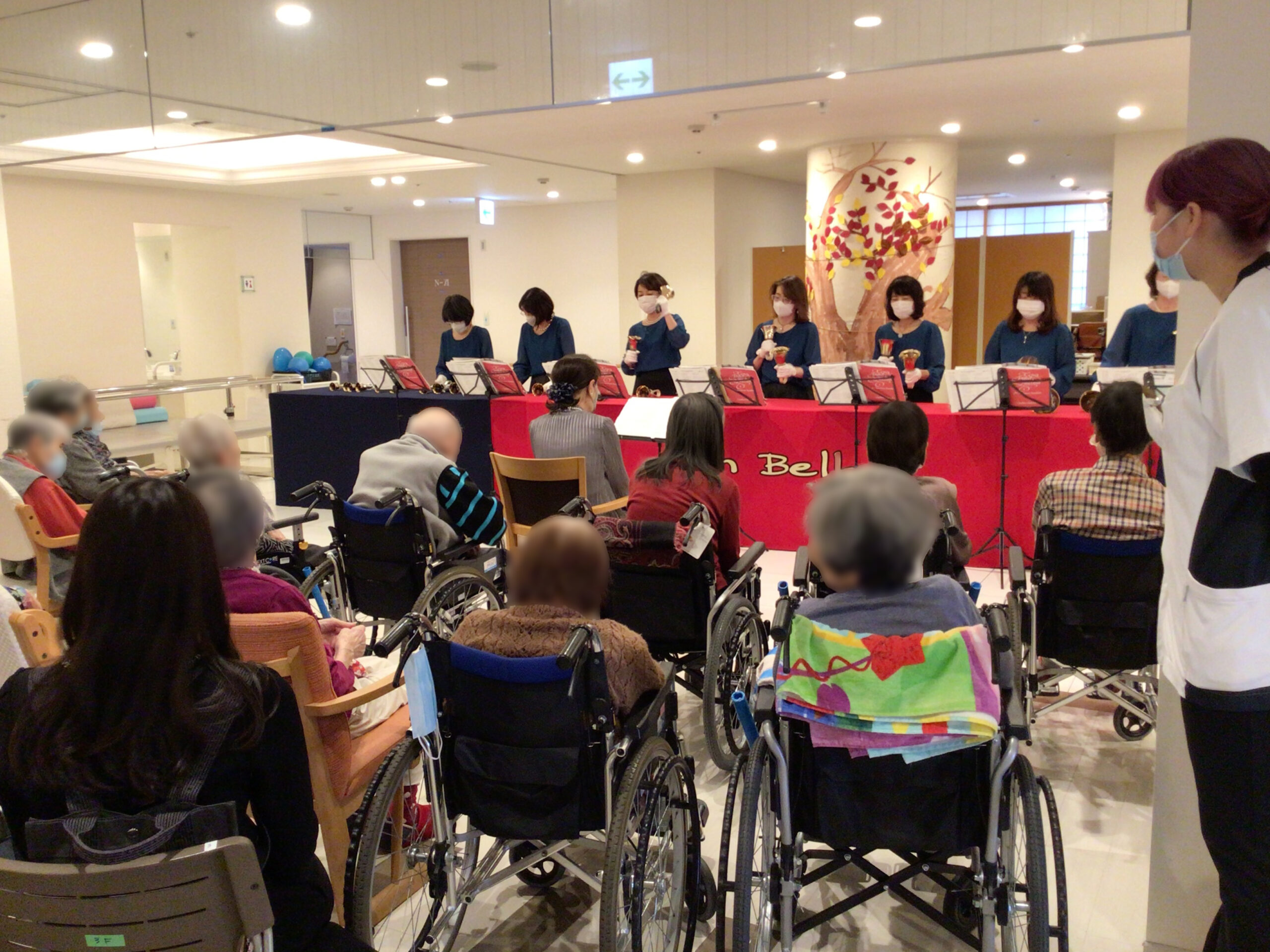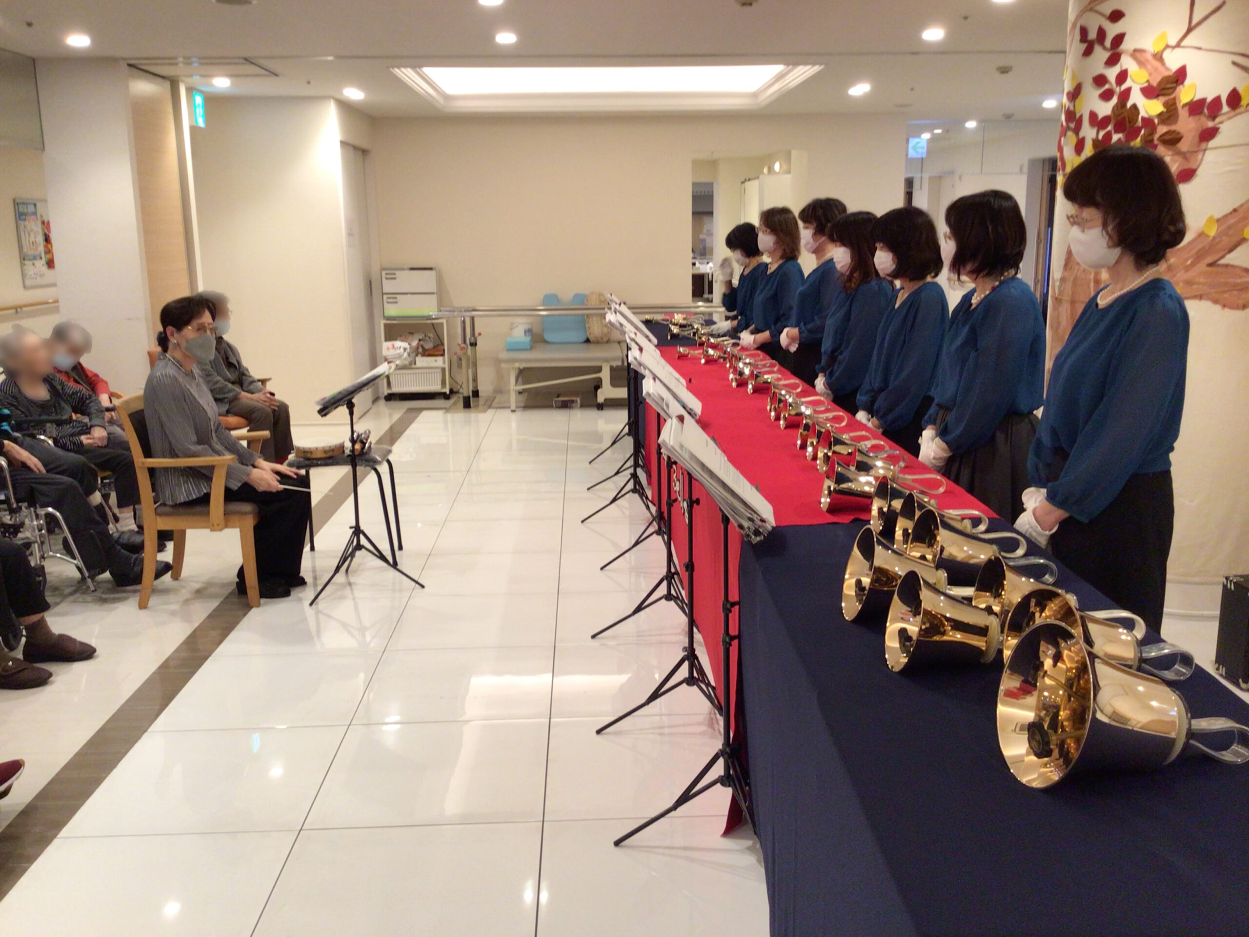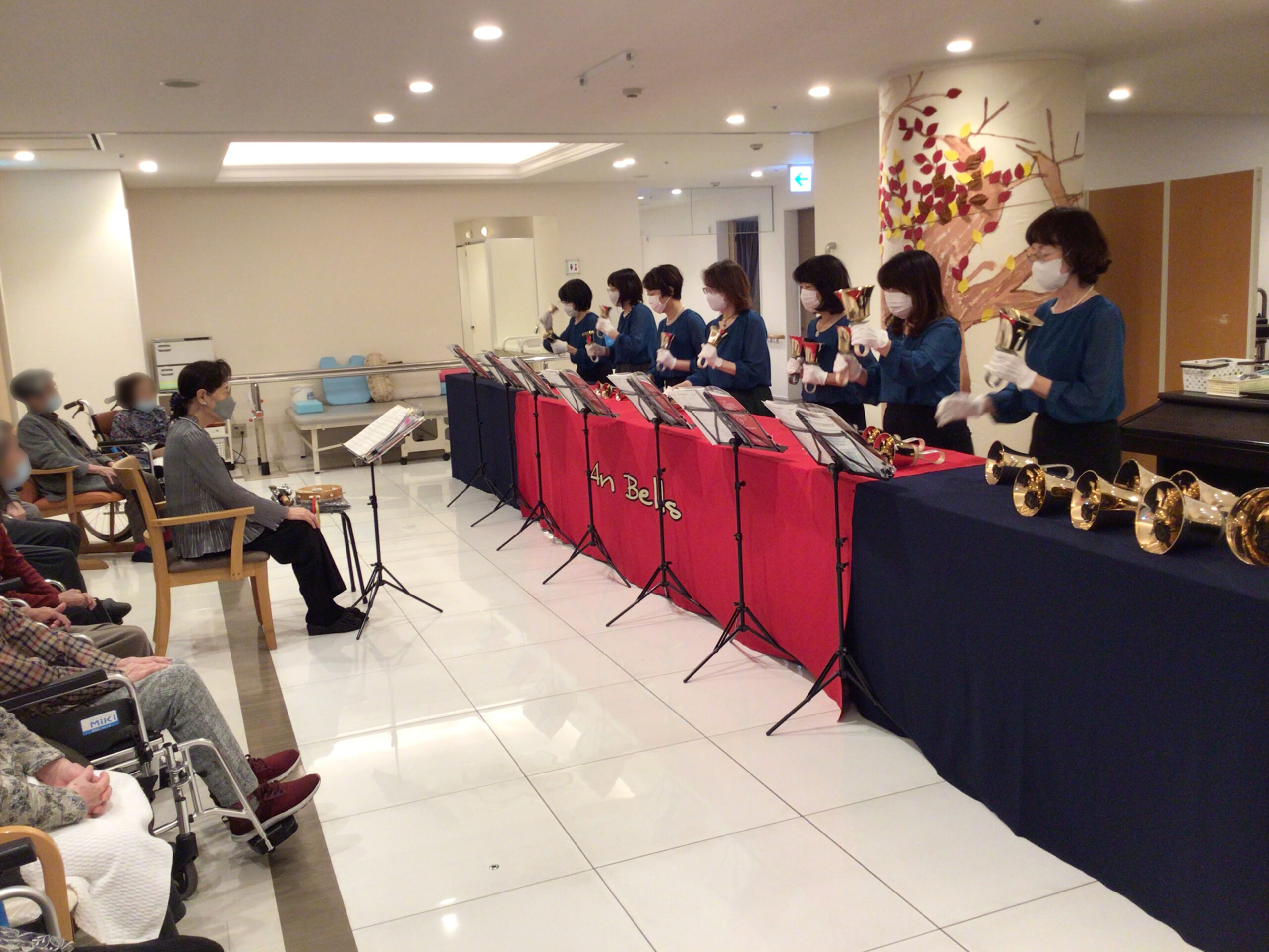 2025年11月26日 いつきの里石川橋:ハンドベル「アンベルズ」の皆さまが来訪 11/26(水)にハンドベル「アンベルズ」の皆さまにご来訪いただき、ハンドベルの演奏会を開催いたしました。透き通った、金色に光るベルの音色が、室内いっぱいに響きわたり、ご利用者様も笑顔で耳を傾けながら楽しまれていました。大小様々なハンドベルを使い分け、幅広い曲目を演奏してくださり、心が和む素敵な時間となりました。アンベルズの皆さま、この度はありがとうございました。